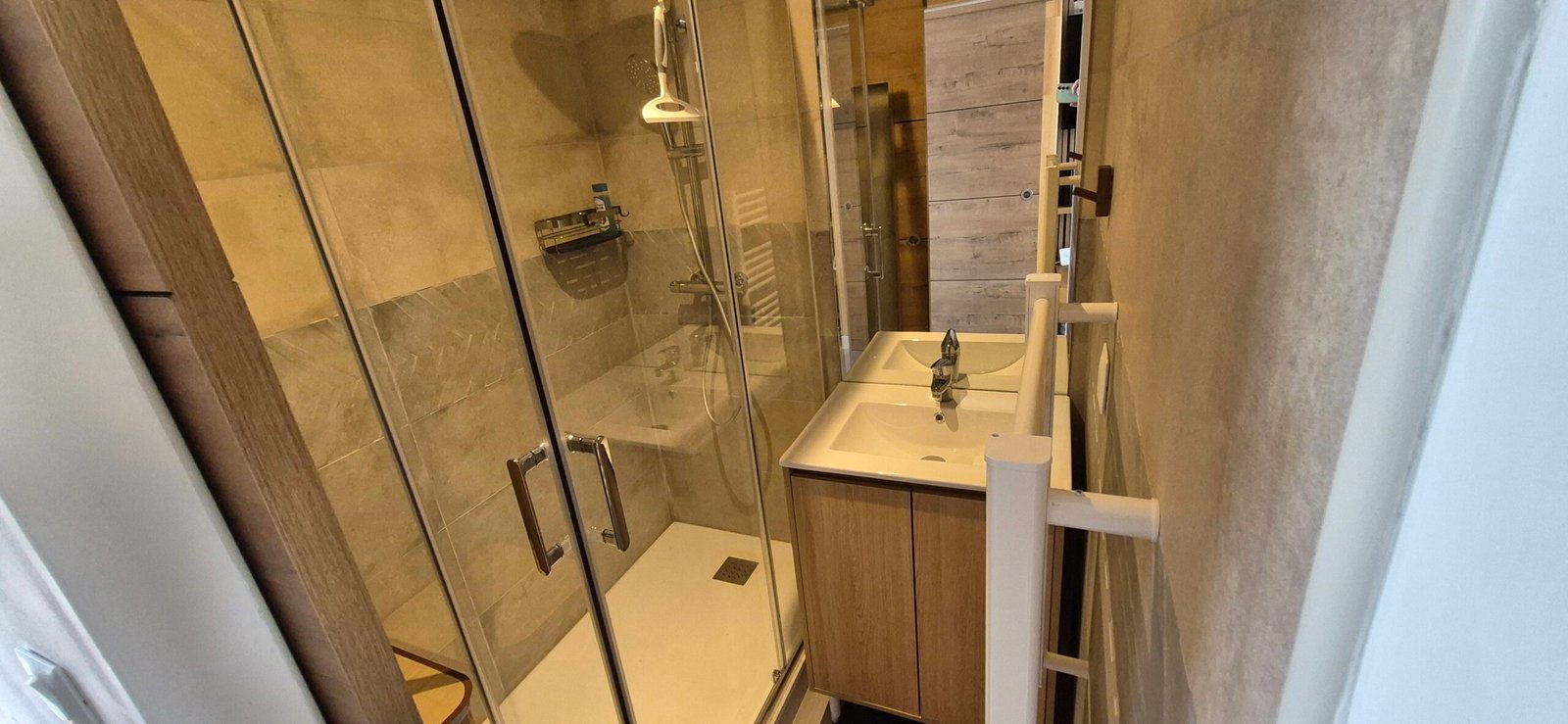 Rénovation complète pour ce studio cabine climatisé et très bien équipé.