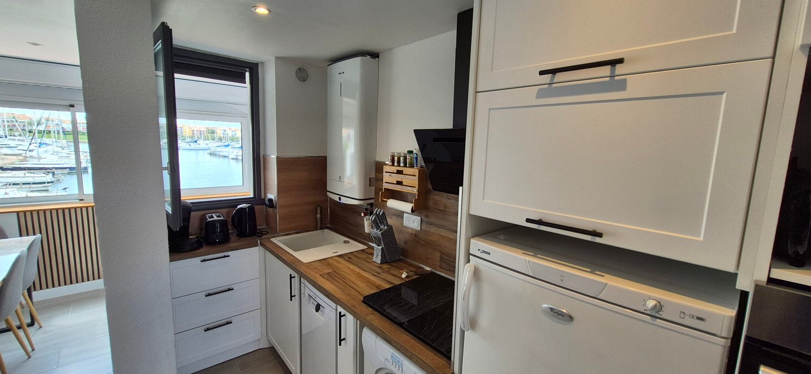 Superbe studio entièrement rénové et très bien équipé pouvant accueillir 5 personnes. Il est situé au 1è étage d'un immeuble sur l'Ile des Marinas avec place de parking privative.