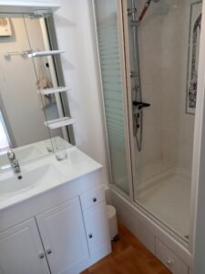 L'appartement se compose d'une pièce de vie avec un coin cuisine équipée, mini four électrique, plaque de cuisson, cafetière senseo ou filtre, réfrigérateur congélateur et petits électroménagers.
