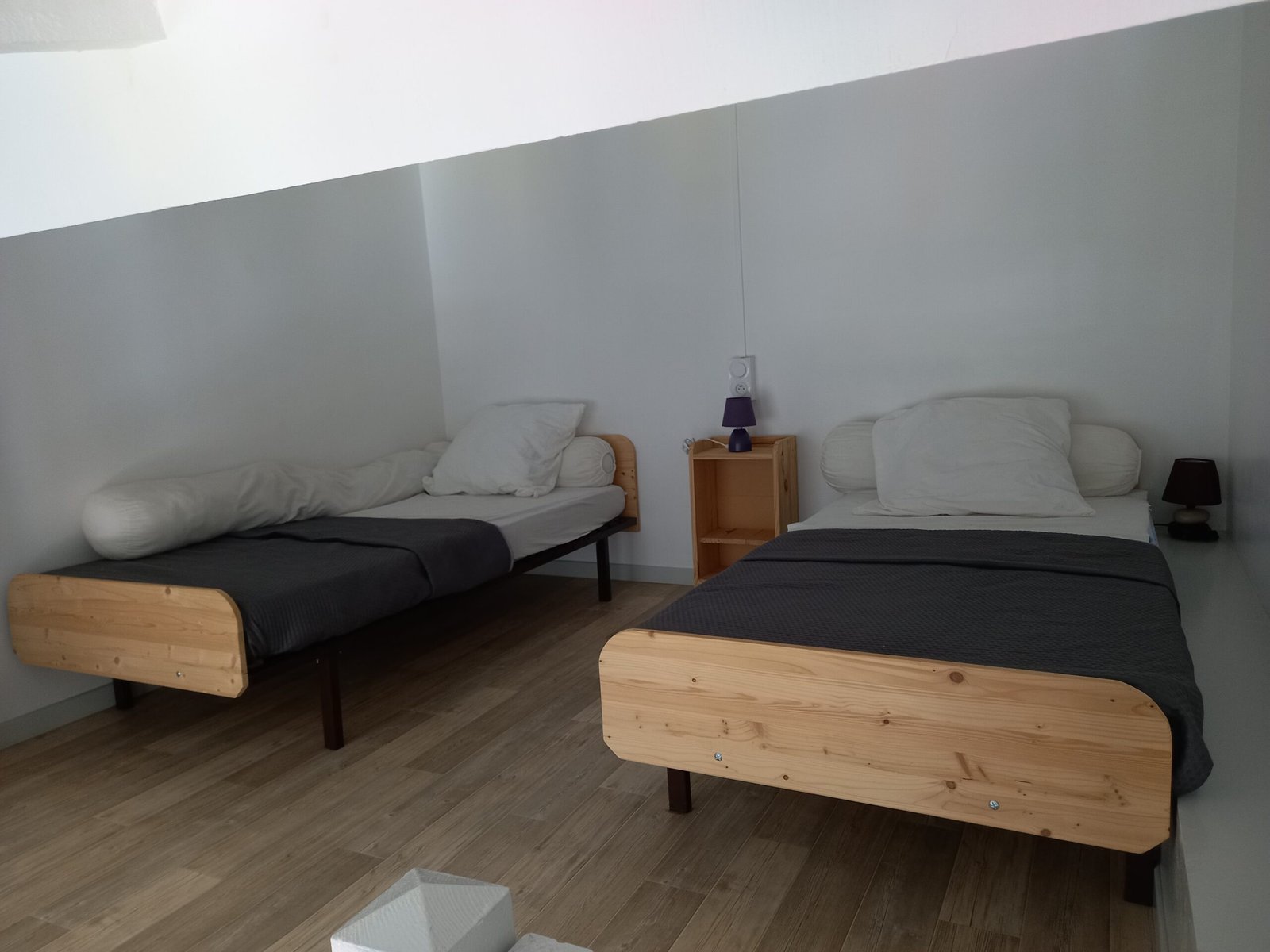 La chambre abrite un lit double et la seconde mezzanine avec deux lits simples.