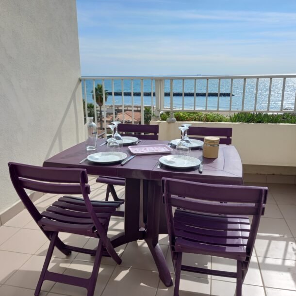 Depuis le canapé convertible vous profitez de la vue sur la mer et la plage du Môle.