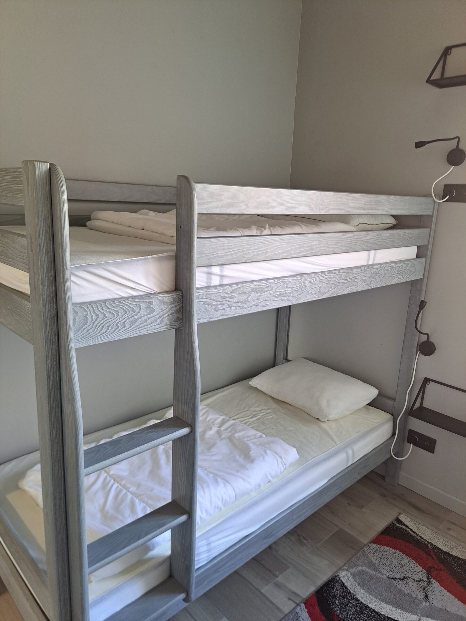 Une première chambre avec lit superposé et en mezzanine la seconde avec son lit en 160.