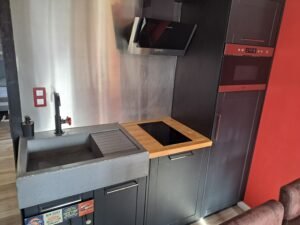 Cuisine moderne et très bien équipés Lave linge, lave vaisselle, four réfrigérateur, mange debout ....